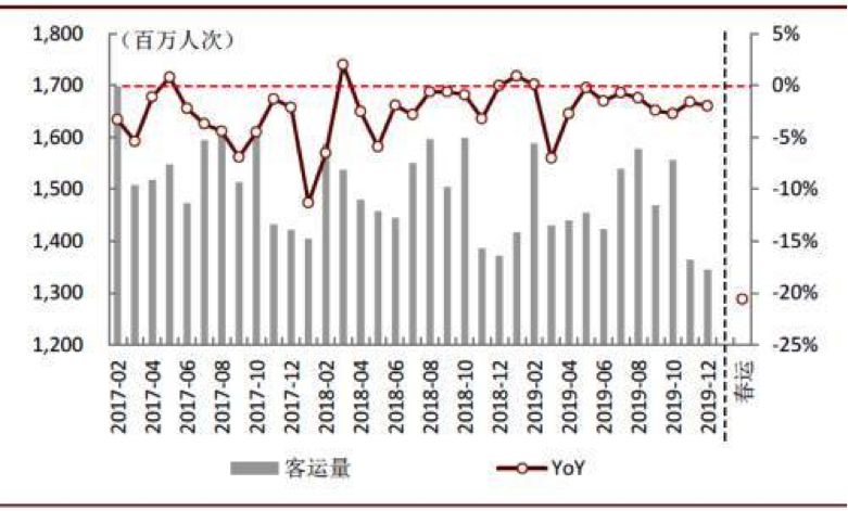 圖表: 國內(nèi)客運量,2020年春節(jié)大幅下滑